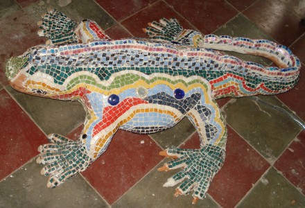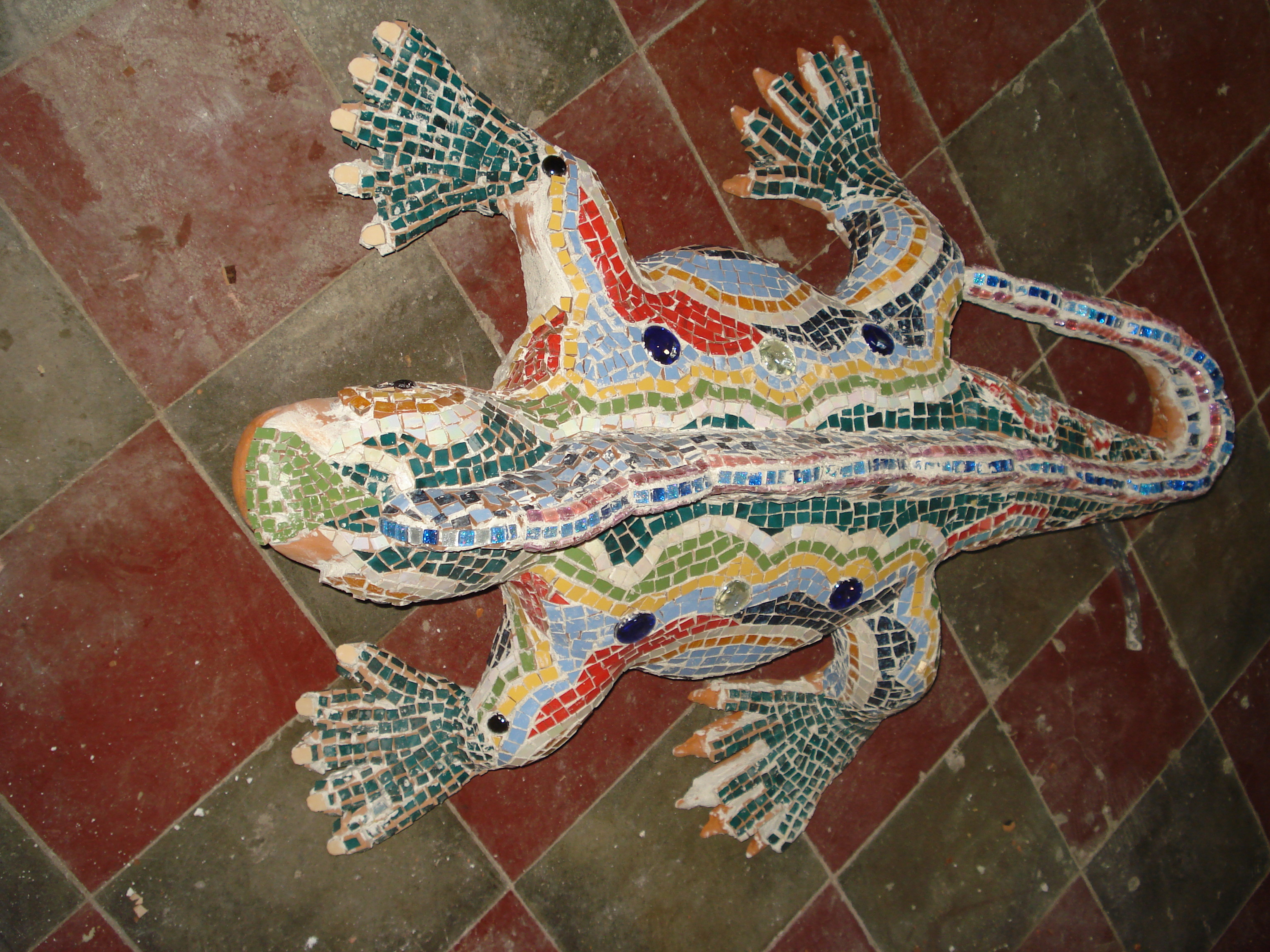 Our member from El Salvador, JORGE ALBERTO ALARENGA ZALDAÑA, mosaic artist, builder of waterfalls and gardens. With 27 years working in ceramics, he sends us some of his work inspired by Gaudí. Some 27 years ago, I started up a workshop for ceramics of all types for the home, such as crockery for the kitchen, decor for the home and garden, amongst other things, and around eight years ago my attention was drawn to mosaic work and I began to teach myself this craft, and I found techniques to work the mosaics, amongst them traditional mosaic art and the art of trencadís (pique assiette) from the maestro Gaudí, and when practising them I managed to create work following these guidelines in such a specific way that I combined my knowledge of the mosaic technique with that created by the maestro Gaudí and my own experience in ceramic work, all of which has been self-taught. I have spent these last eight years creating close to 15 Sacred Art murals or mosaics, and in the last year I have taught three other associates. I have only worked in my country of El Salvador, both for private clients as well as creating temple murals for the Catholic Church, using materials such as fragments of ceramic china, Murano glass, gold, silver and mother of pearl finishes, on china fragments, which has allowed me to give each work I created its own unique touch. For my current work, the mosaic art and maestro Gaudí’s trencadís have been my inspiration in order to develop this art little by little, each day trying to discover new applications and ideas to create new projects. It has been somewhat difficult as both the economic situation as well as the lack of art appreciation in our country, have not allowed us to develop the work in the way we would have liked. Currently, we are building other animal figures as water fountains and ponds, using this Gaudinian technique. And we have other murals in progress, some in temples. I work with a team of four people to whom I have tried to impart my knowledge so that this art can be diffused and not lost. Even if the difficulty of the current economic situation does not allow us to develop how we would like with the construction and creation of new art projects by applying these mentioned techniques, me and my team are working to spread awareness of this type of work which is not very popular in our country. ![]() Work motto: “Patience, slow down because we are going fast, our hands hurt, the skin on our fingers split, we bite ourselves and we bleed, but in the end, look, enjoy, it was worth it my colleagues, my friends, it was worth it.” Jorge Alvarenga. Mosaic artist. Garden decorated with two mosaics using classical mosaic technique, a quetzal and a “torogoz” (Motmot bird) and also a turtle fountain from which water flows created using the Gaudinian technique. ![]() ![]()